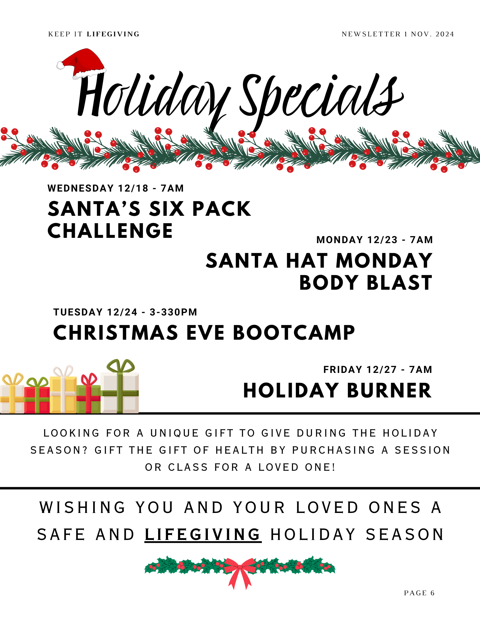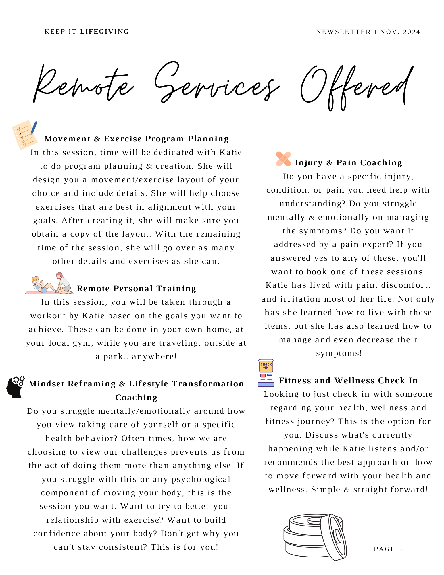 Please monitor the weekly class schedule for a variety of different time classes Katie is offering.