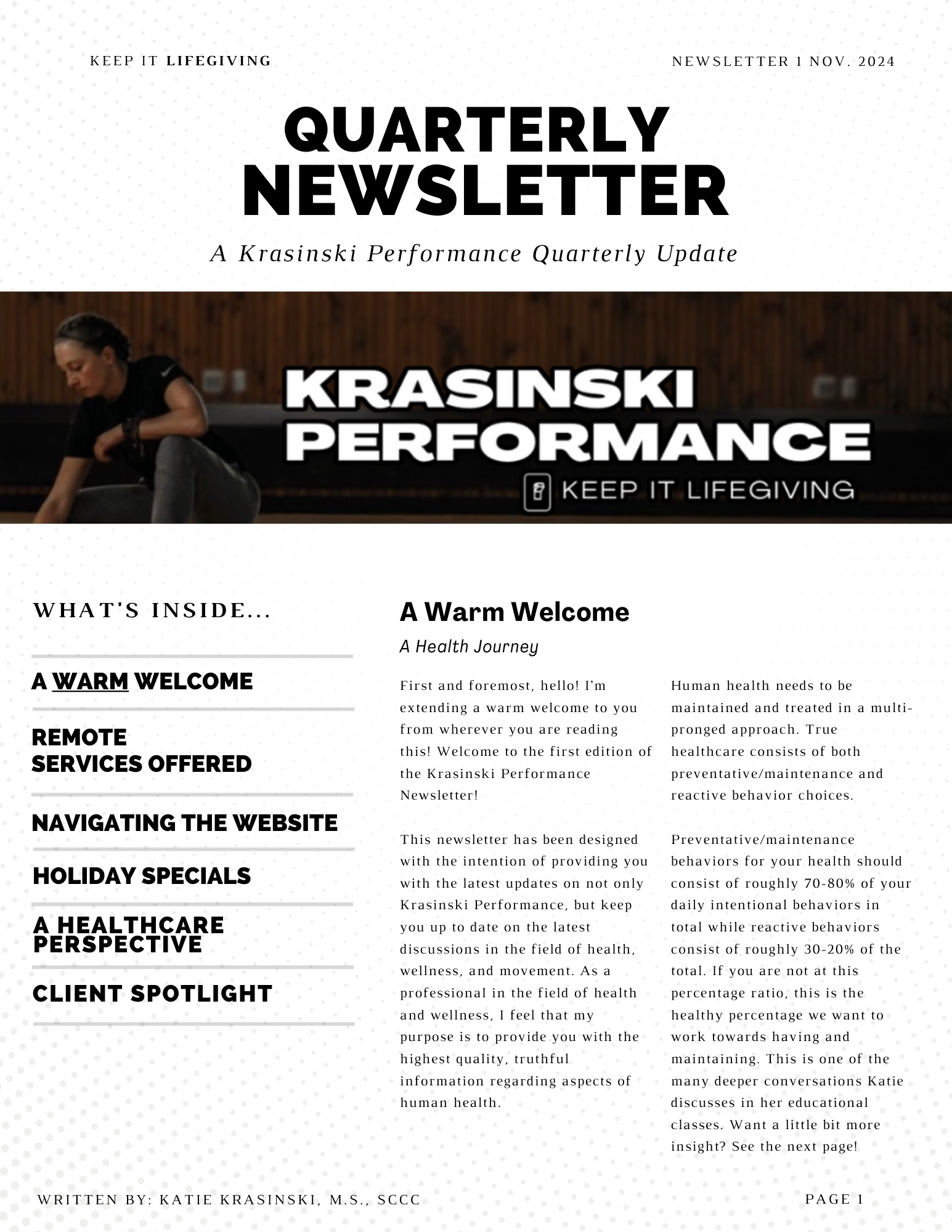 Make sure to check out the Apparel and Gear Tab to purchase some Krasinski Performance clothing!